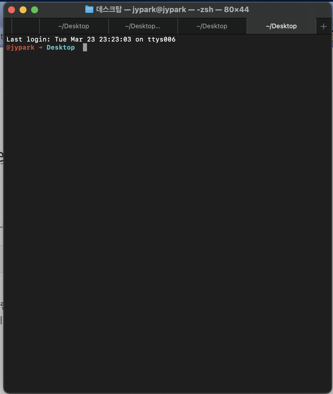 앞에 글에서 ZSH를 설치한 후 발생한 증상입니다.