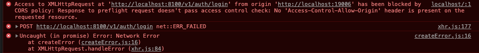 저의 경우 localhost:8100 에 서버를 두었고, react 웹 서버는 localhost:19006 에서 실행하고 있었기 때문에 발생하였습니다.