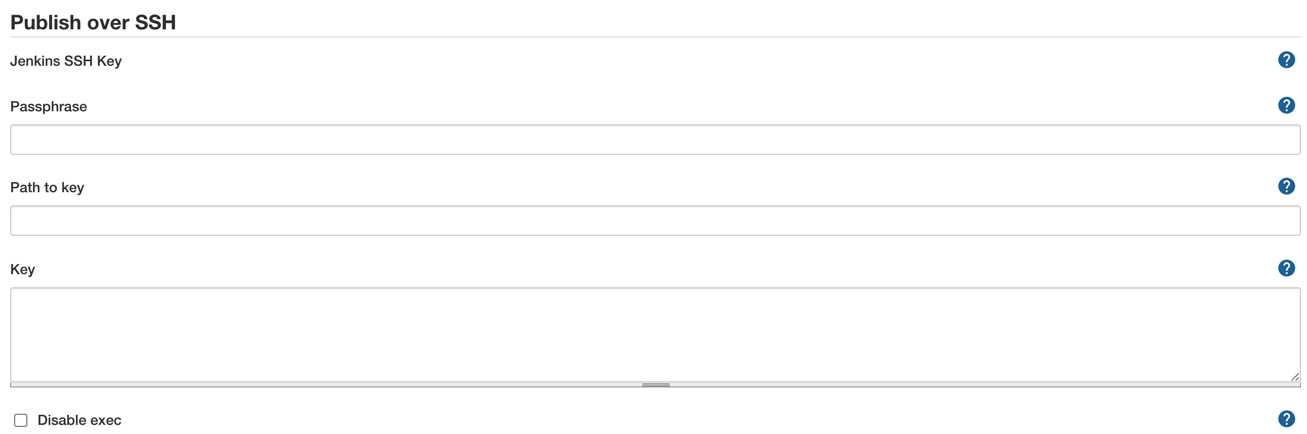 Jenkins 관리 -> 시스템 설정 -> Publish over SSH 화면에 들어갑니다. 맨 아래에 있네요.