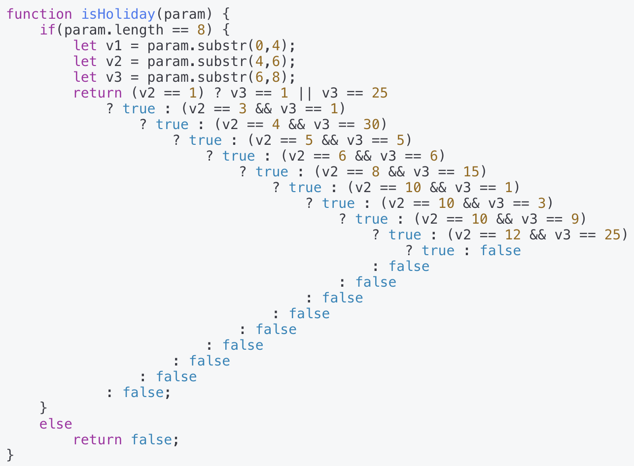코드를 보기에는 이쁠지 몰라도 상당한 가독력이 필요한 코드가 되어버린다.