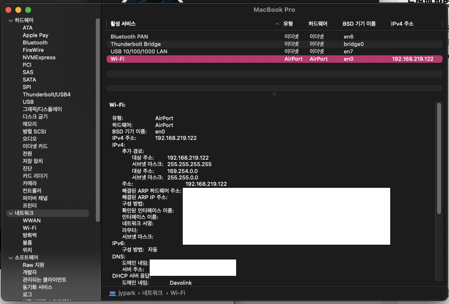 방법: 우측상단 애플로고 -> 시스템 환경설정 -> 네트워크