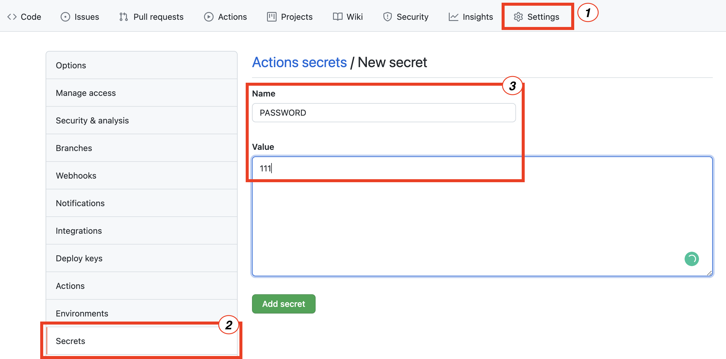 MY_PASSWORD: ${{ secrets.PASSWORD }}