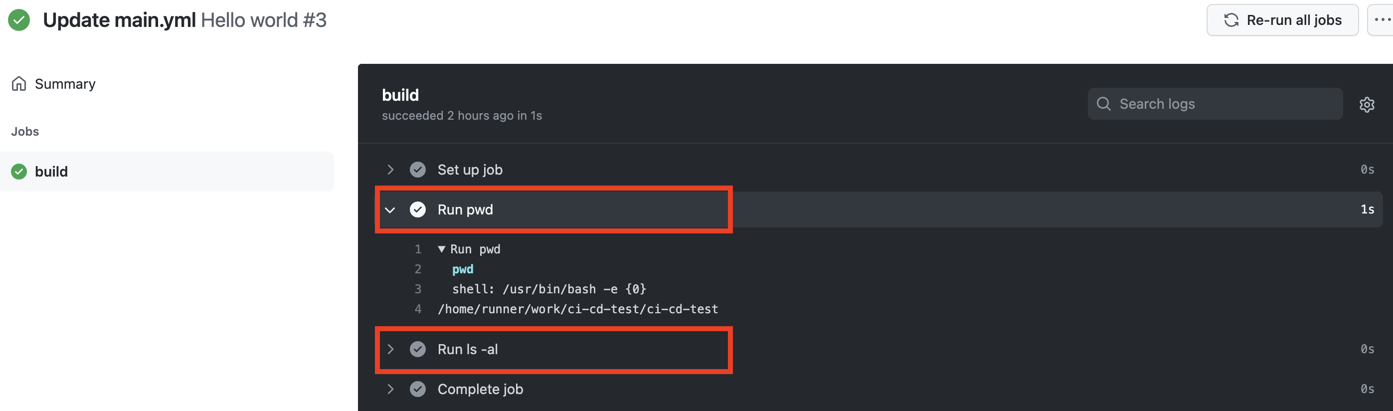 - 우리가 지정한 step들이 진행된 걸 확인할 수 있습니다.