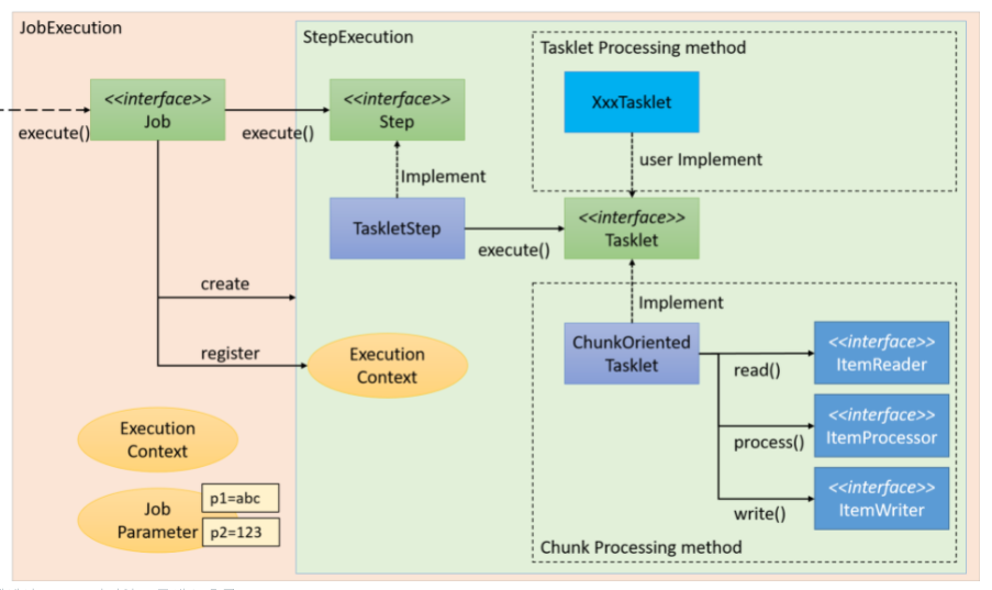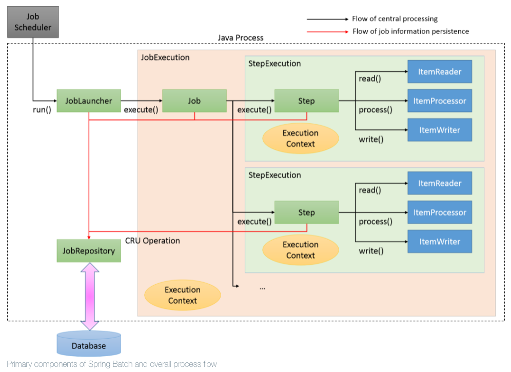 다음 아키텍처는 스프링 배치의 프레임 워크의 구성 요소를 보여 줍니다