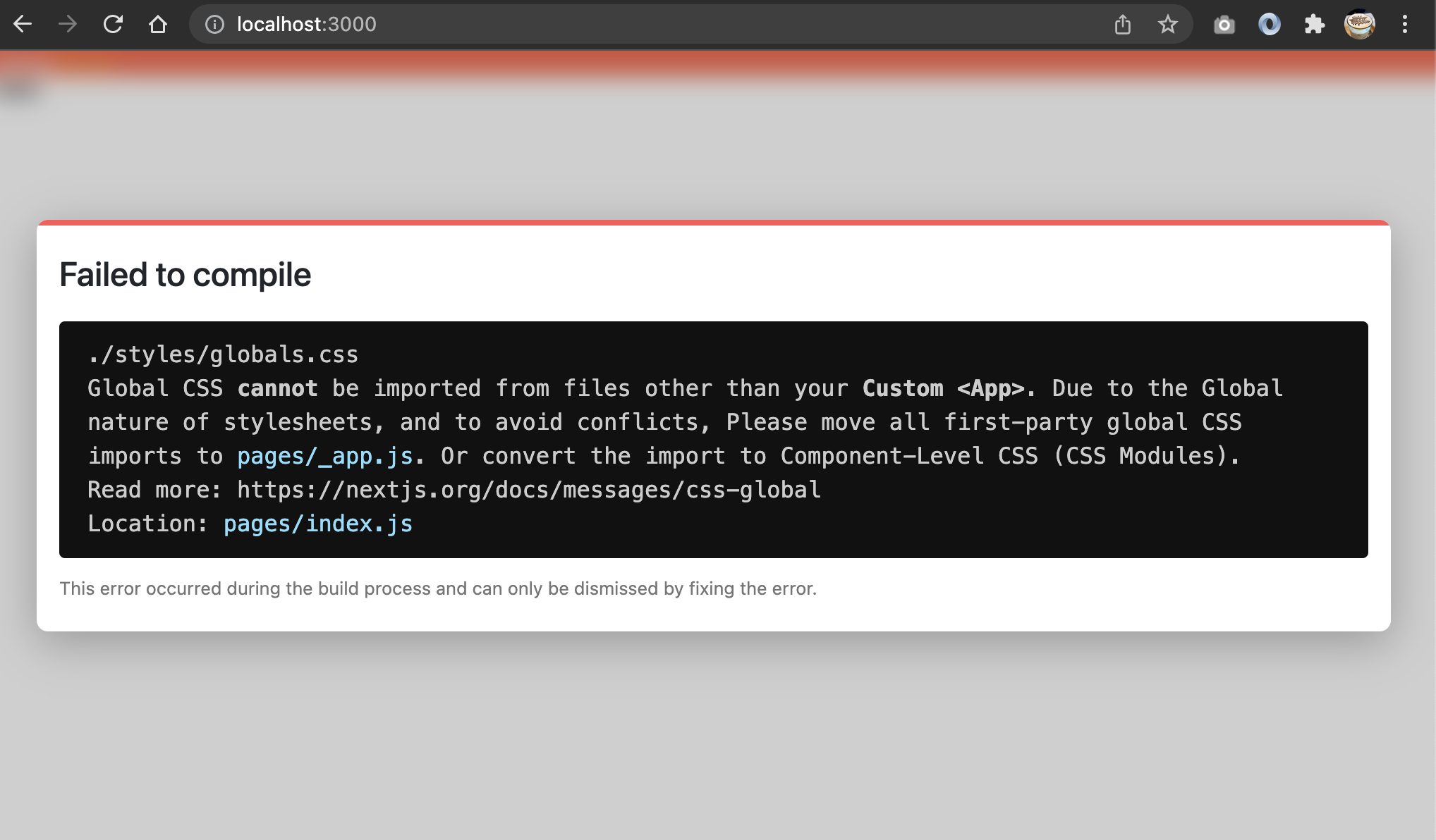 추가로 globals.css 는 여기서 자동호출되어 전역의 css 스타일링을 담당합니다. 여기에서 호출이 되지 않으면 에러가 발생하게 됩니다.