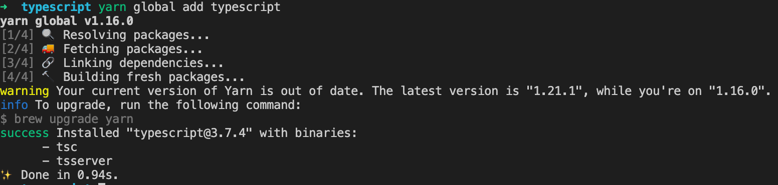 타입스크립트의 결과물이 필요하기에 아래 명령어를 타이핑합니다.