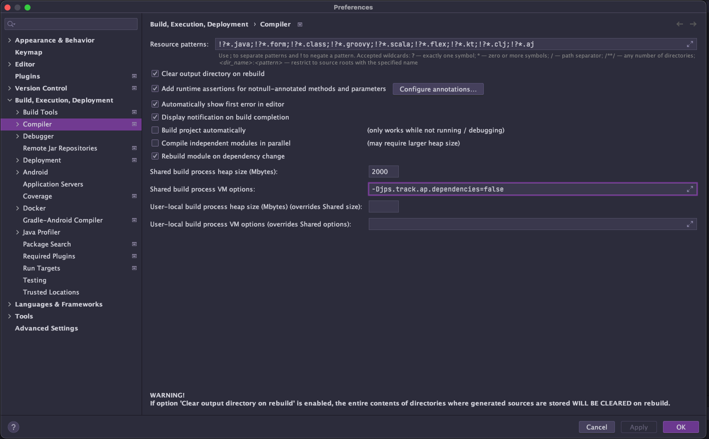 java: JPS incremental annotation processing is disabled. Compilation results on partial recompilation may be inaccurate. Use build process "jps.track.ap.dependencies" VM flag to enable/disable incremental annotation processing environment. Writing classes