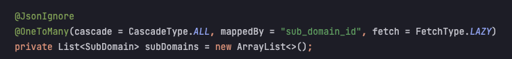 > final List<SubDomain> subDomains = domain.getSubDomains();