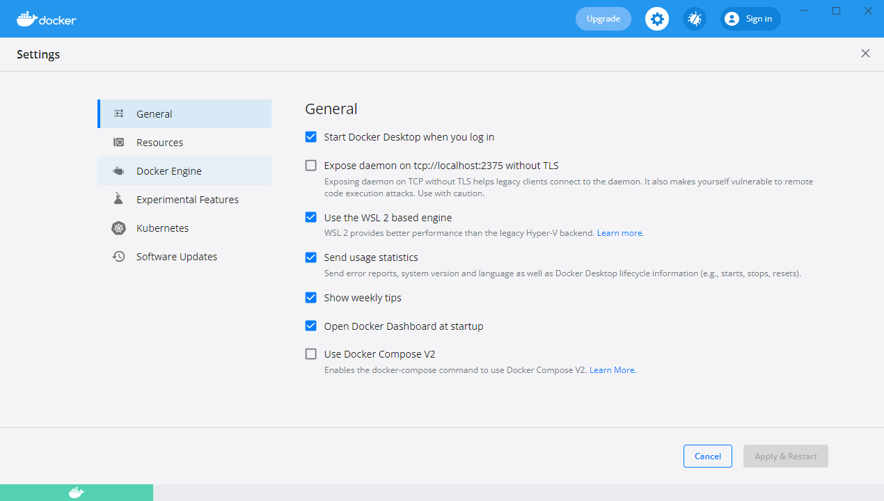 설치 과정이 매끄러워서 마치 네이티브스럽게 설치된 것 같지만, 사실 Docker는 Linux 컨테이너이므로 실제로는 데스크탑 내장의 가상머신에 설치가 된 상태입니다.