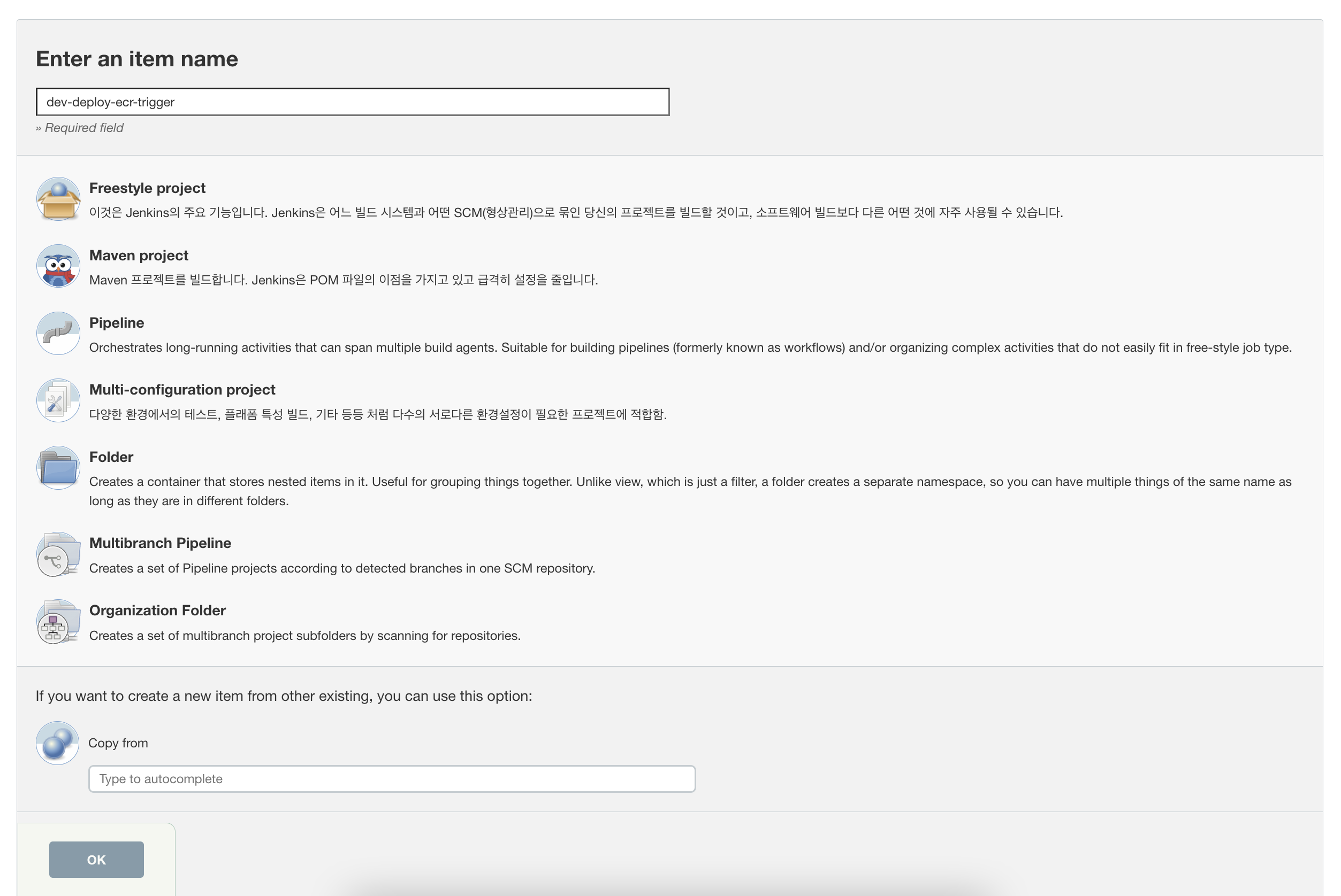 Jenkins 설정이 끝났다면 이제는 아이템들을 설정해서 배포를 해야 하는 수순만 남았습니다. 가장 먼저 ECR에 대한 내용은 이전 글에서 따로 적어둔 내용이 있으니 확인해주세요 :)