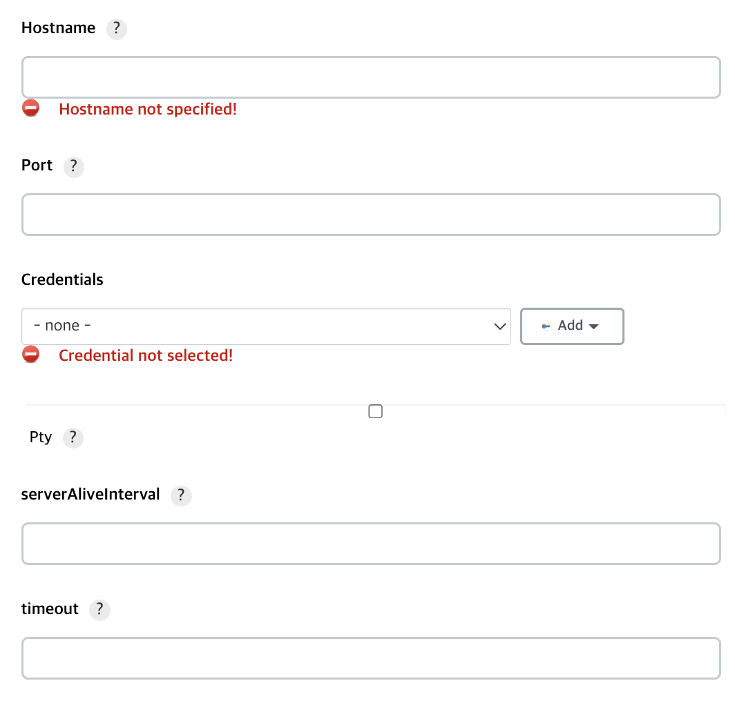그럼 위와 같은 hostname, port, credentials 를 입력하는 부분이 있는데 hostname에는 서버의 IP, Port는 22, Credentials는 기존에 설정해둔 내용이 없으면 Add 버튼을 눌러 새롭게 생성해줍니다. (혹시 Add 버튼을 눌렀는데 아무 액션이 없는 경우 저장하고 다시 들어가주세요.)