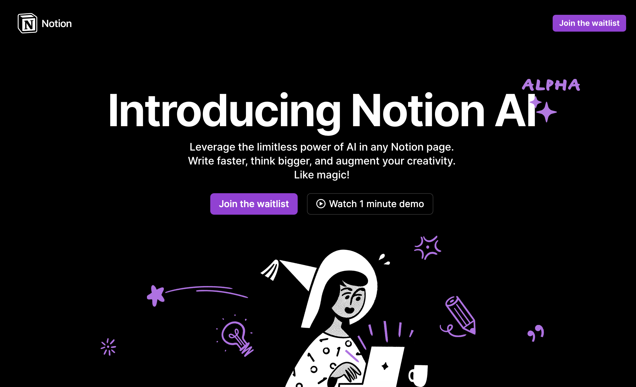 Leverage the power of AI in any Notion page. Now in private alpha.