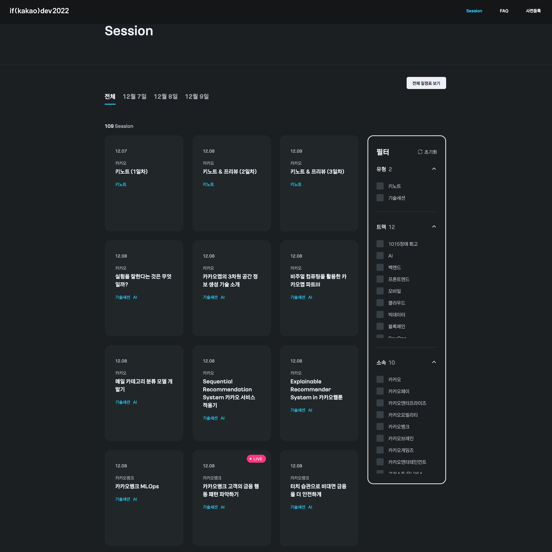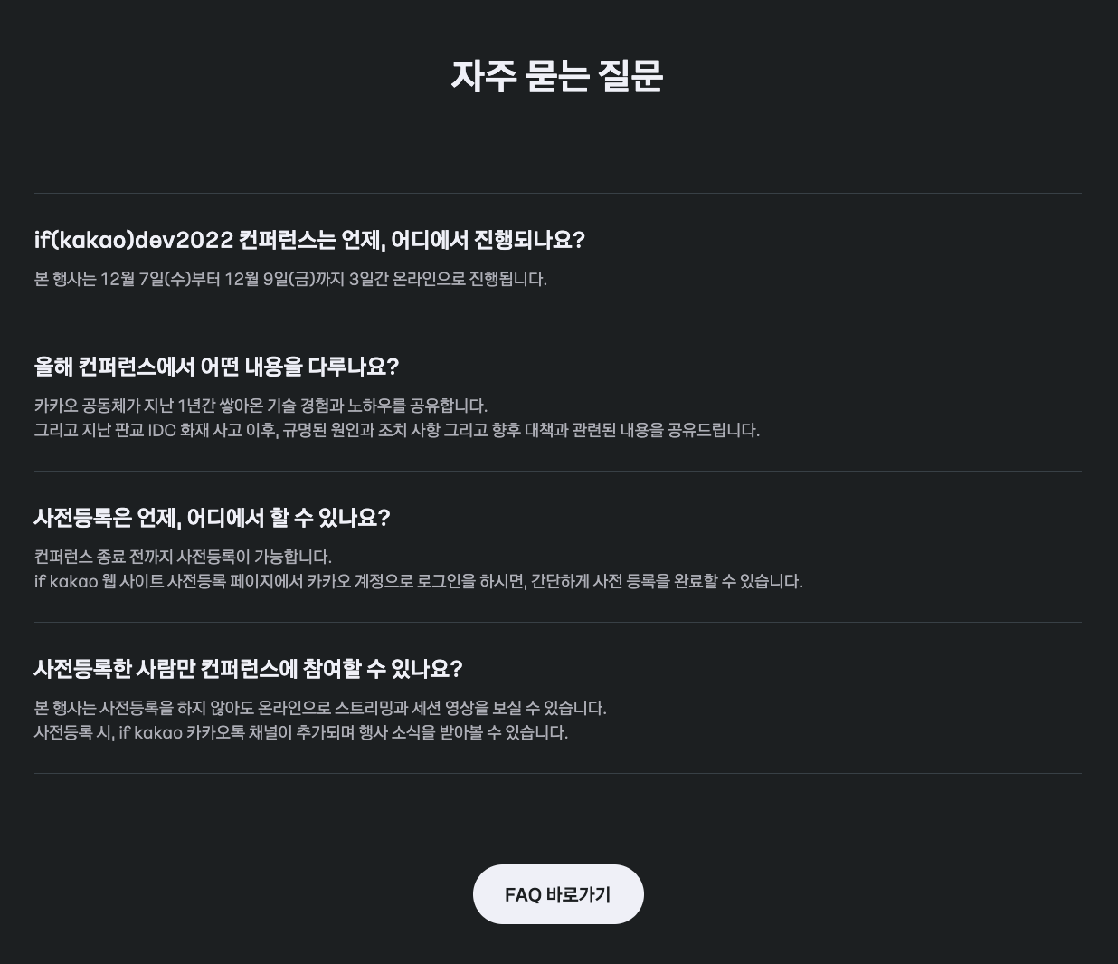 안녕하세요~ 내일 12월 7일부터 12월 9일까지 카카오에서 주최하는 if(kakao)dev2022 가 개최됩니다.