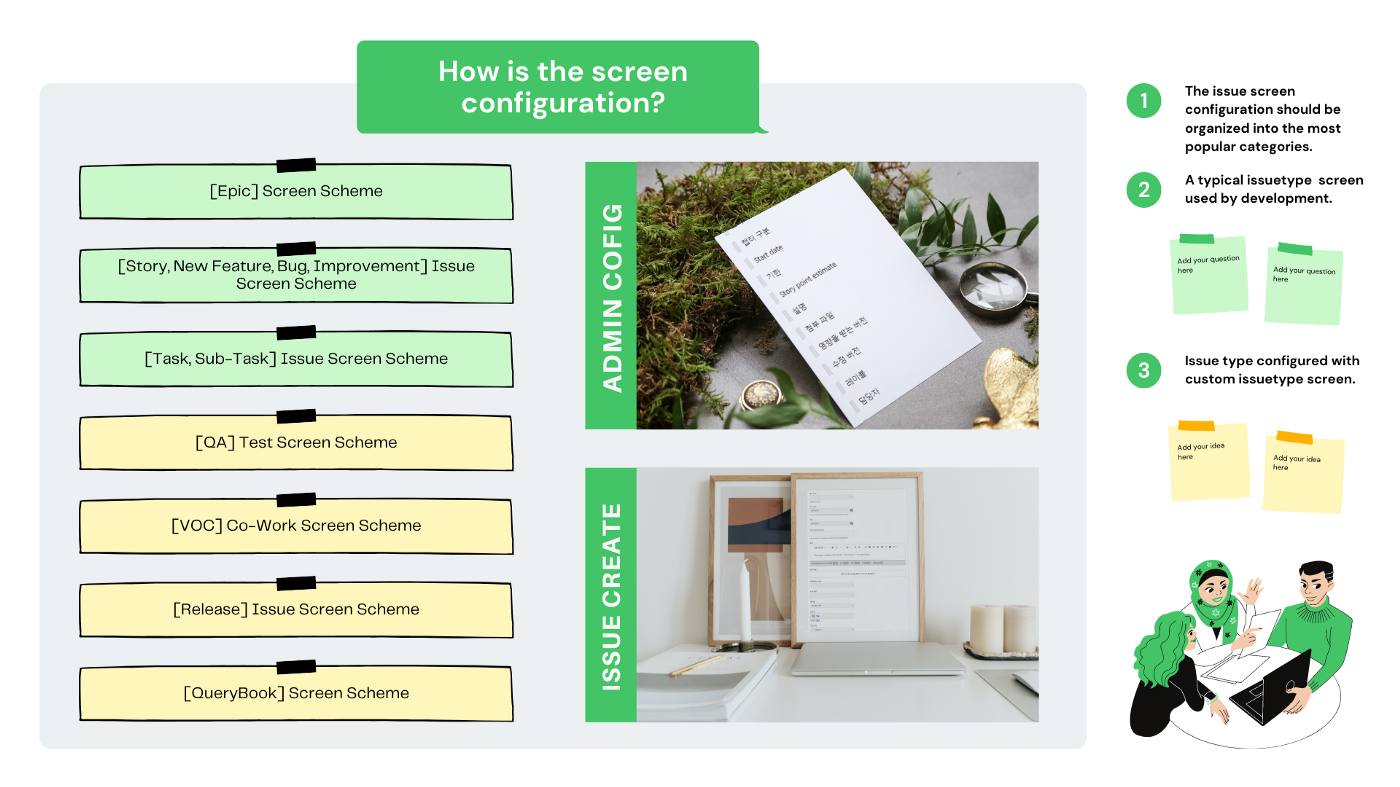 세 번째, 인터뷰를 통해 얻은 결과물을 통해 이슈 유형/워크플로우/이슈 화면을 재정의합니다. 사용성 개선 활동의 가장 핵심적인 부분입니다.