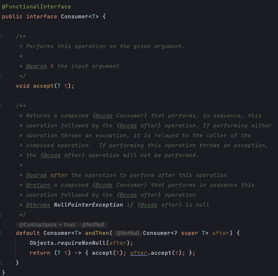 - andThen을 활용하여 두 개 이상의 Consumer 를 연속적으로 실행할 수 있다.