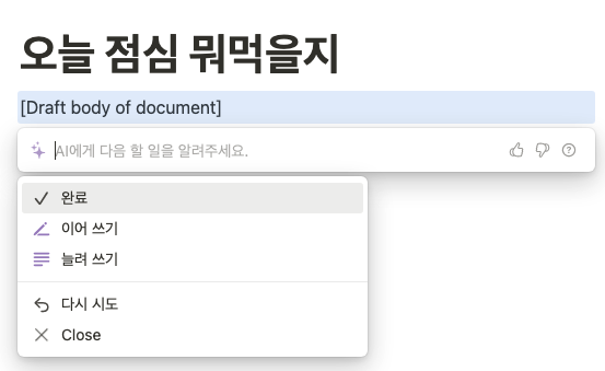 열심히 그 다음에 들어갈 문장들을 작성해주는 Notion AI 입니다. 그만 괴롭히겠습니다.