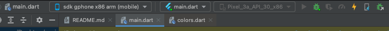 이제 SDK 설치가 다 되었으면 (이전에는 안드로이드 스튜디오 재부팅이 필요했지만 이제는 자동으로 적용되네요) 앱을 실행시켜보겠습니다. 실행 버튼은 Debug 로 적용하고 설치된 에뮬레이터 기기를 누르면 실행됩니다.