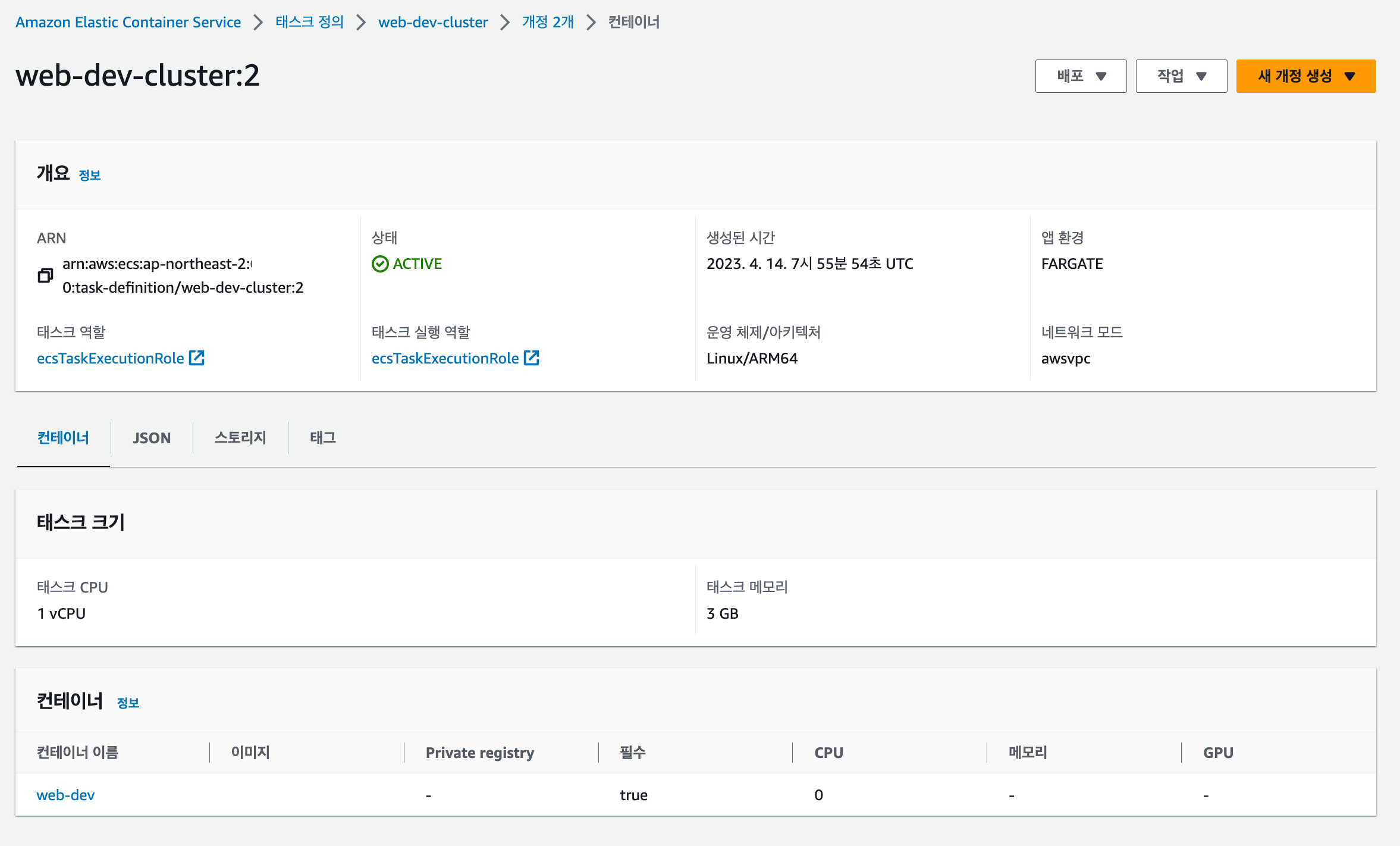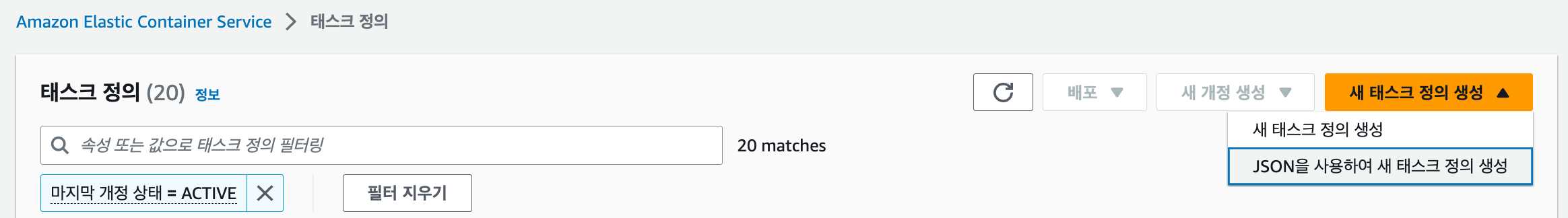 아래 링크로 이동하여 태스크 리스트를 확인한 후 '새 태스크 정의 생성'이라는 버튼을 눌러 '새 태스크 정의 생성' 을 해줍니다.