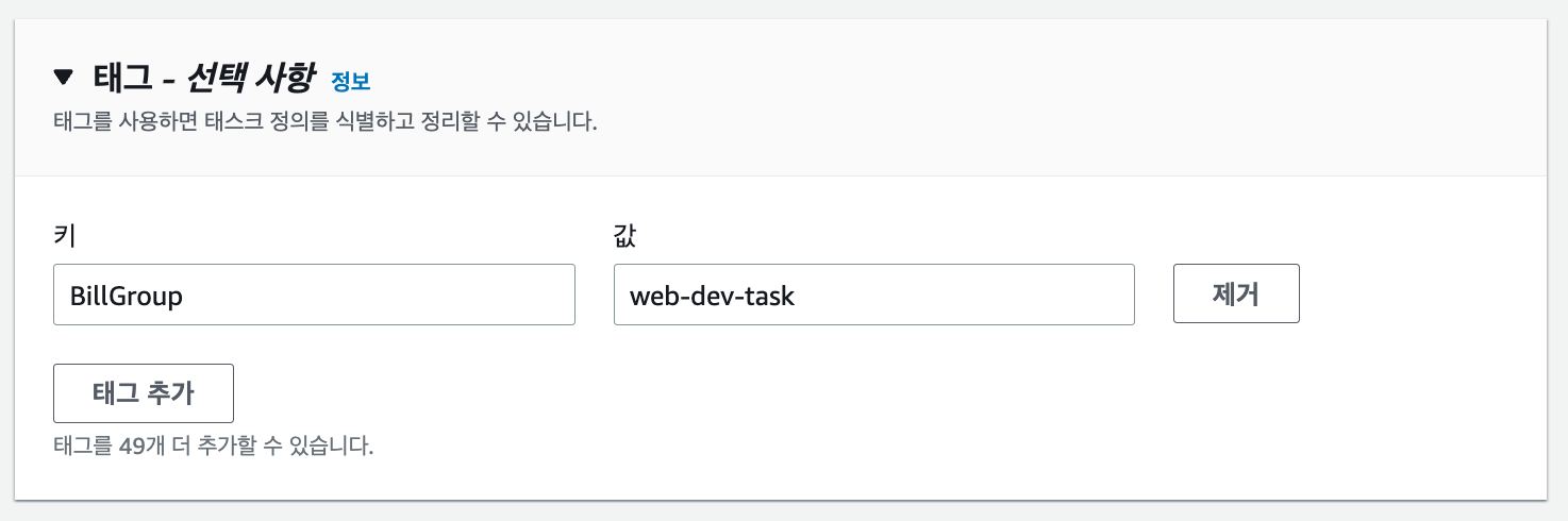 선택 사항이긴 하지만, 태그를 설정하면 비용 어떻게 청구되는지 확인하기 편합니다.