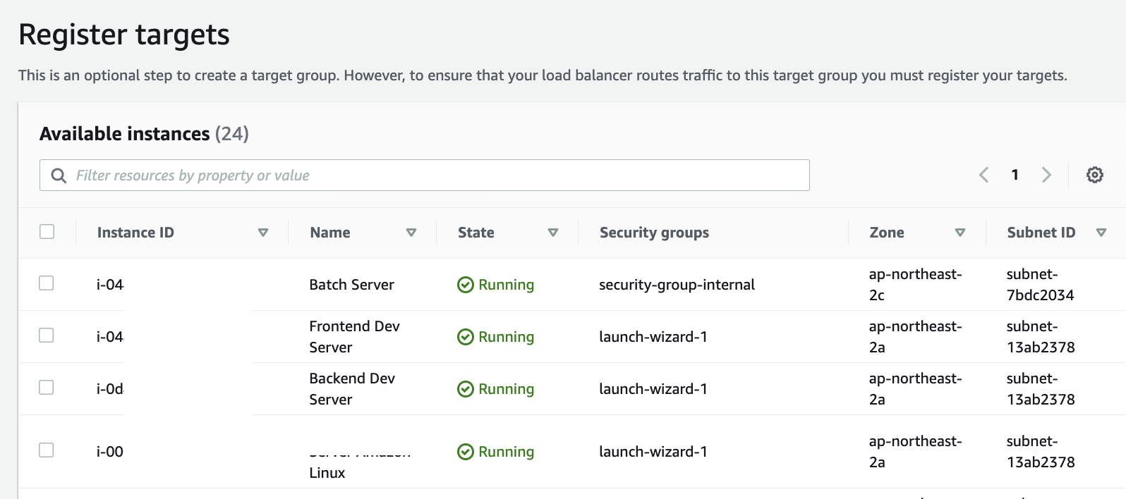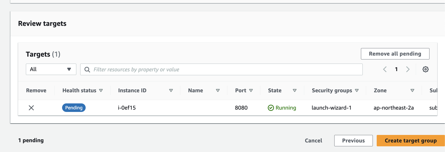 그리고 인스턴스와 대상 그룹 이름을 자유롭게 설정해줍니다.
