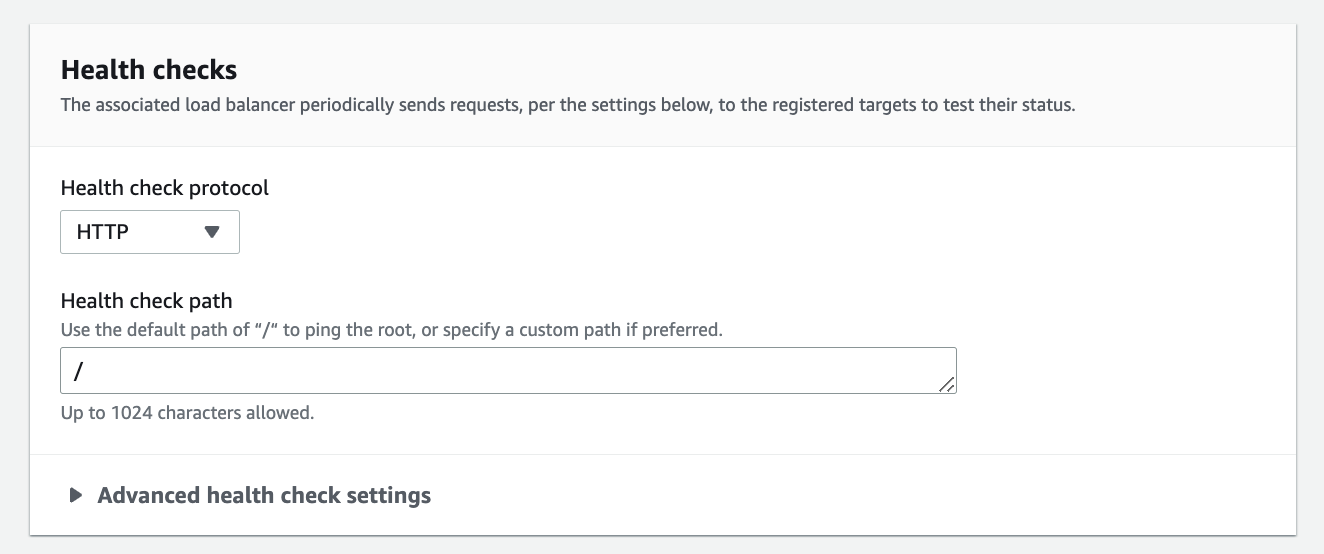 아래 헬스 체크는 Actuator 를 사용하는 경우 '/actuator/health' 경로를, (properties 설정에 따라 다를수도 있습니다.) 그 외 웹 사이트에서 rootpath가 존재하는 경우 '/' 을 입력합니다.