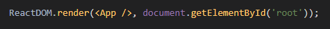 이 소스를 통하여 React는 같은 경로에 있는 App.js 파일을 호출해오고 그 부분에 document.getElementById라는 DOM 선택자를 통하여 렌더링을 진행하는 간단한 소스입니다.