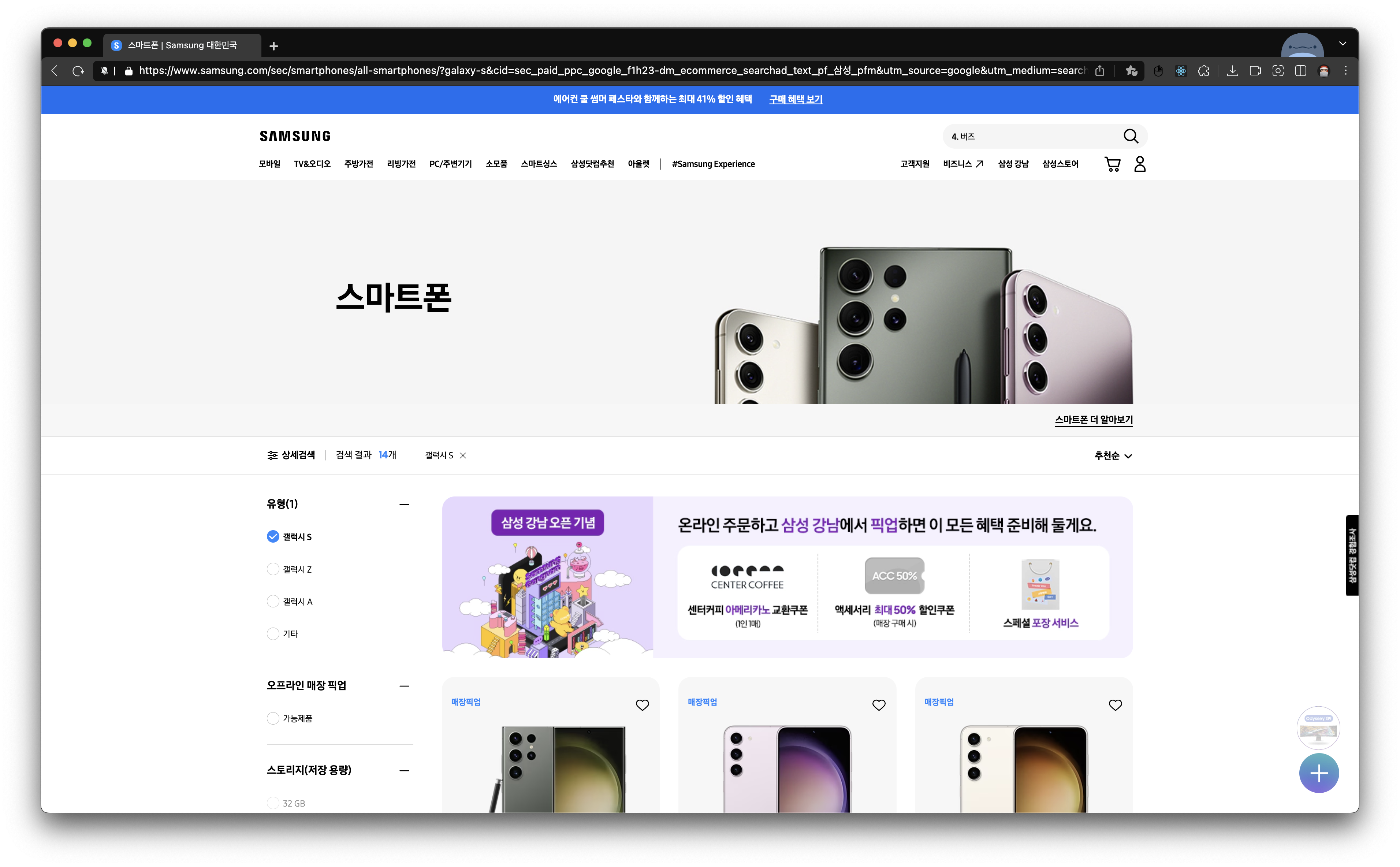 그리고 이벤트를 더 강하게 내세운 나머지 전면에는 이벤트 페이지를 표시하는 사진들만 줄비하고 정작 필요한 옷과 관련된 내용은 거의 없이 상세페이지로 들어가야지만 알 수 있는 구조로 되어 있습니다.