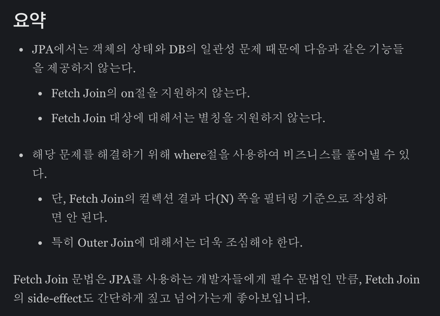 JPA가 Fetch Join에 대한 On절을 지원하지 않는 이유