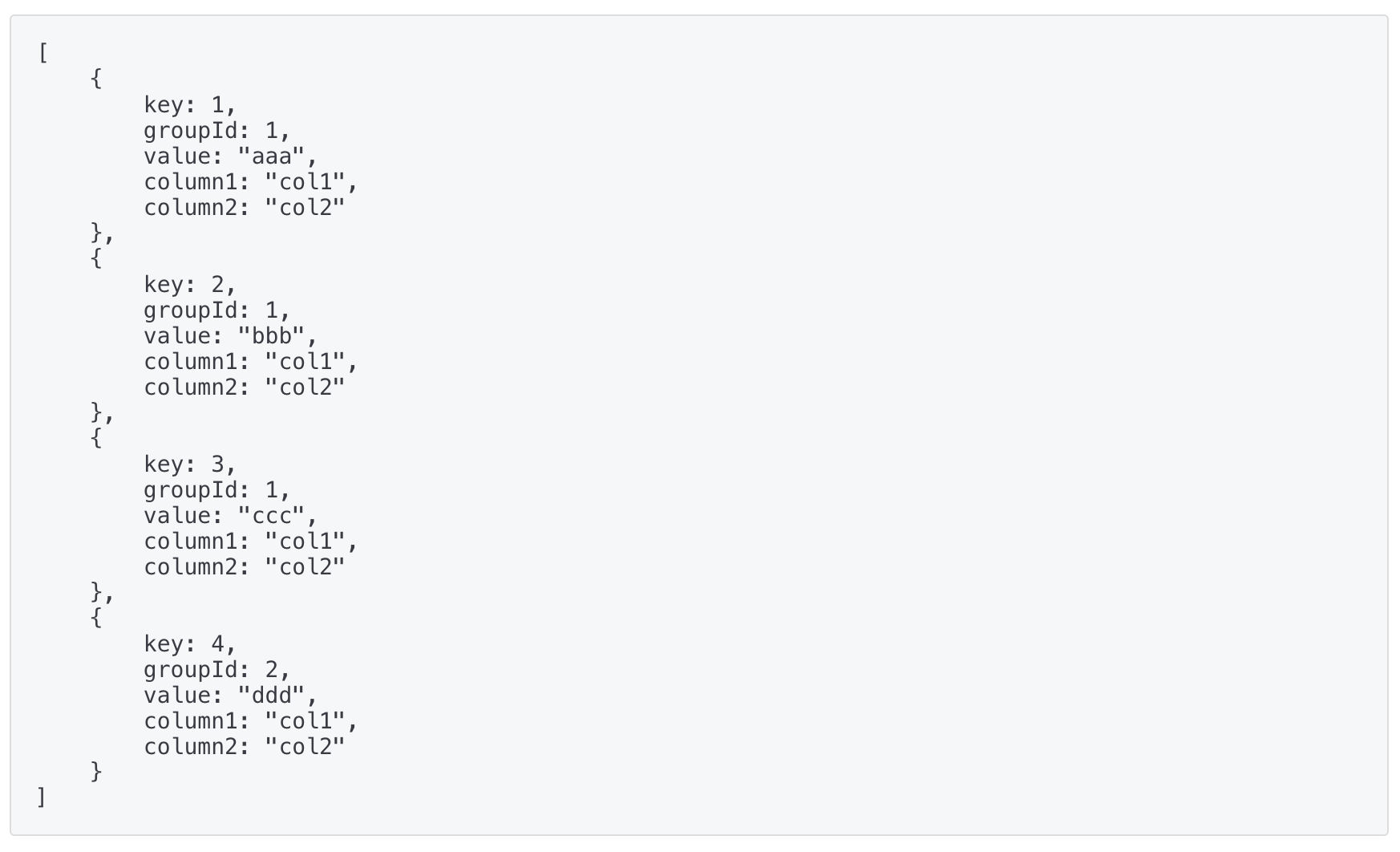 만일 호출이 진행되었고, Select Query의 결과값이 4Rows 라면 아래와 같이 json이 Response로 반환될 것이다.