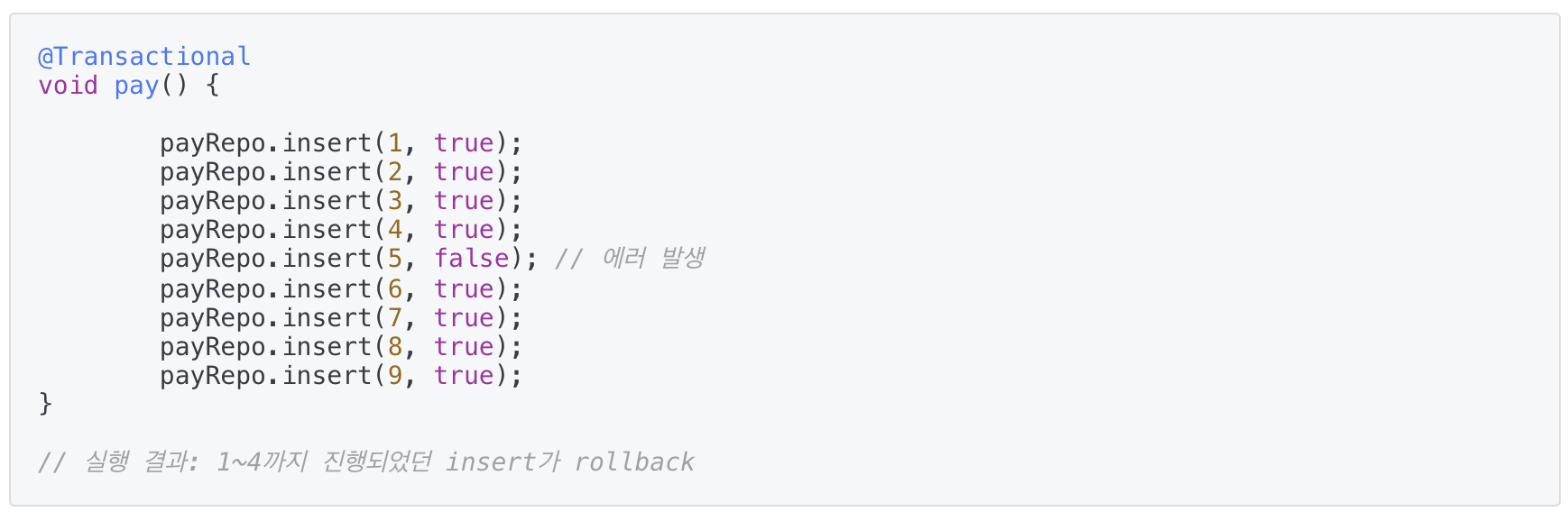 위에서 해당 메서드에서 이루어진 모든 DB 작업이 초기화된다.