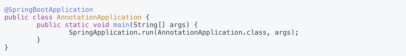 프로젝트를 생성하면 제일 먼저 확인할 수 있는 어노테이션이 있다.