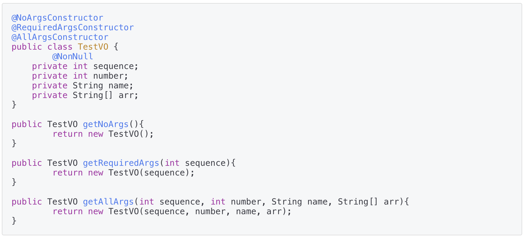@NoArgsConstructor, @RequiredArgsConstructor, @AllArgsConstructor