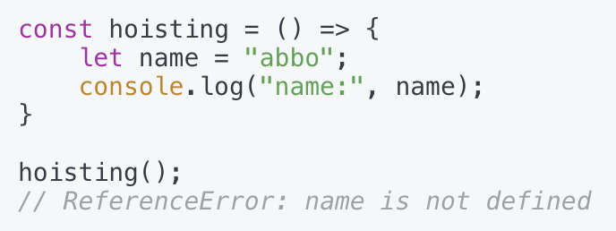 즉, let/const 변수가 스코프 생성 시점에 생성이 되므로 문맥상 에러가 발생하는 것이다.