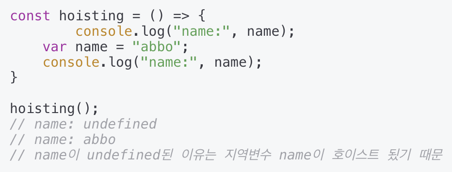 호이스트: 변수의 정의가 그 범위에 따라 선언 / 초기화 / 할당 분리되는 것을 의미