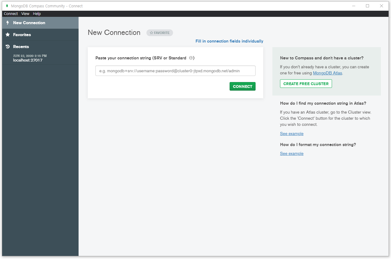 MongoDB Compass는 MySQL Workbench와 같은 DB Tool의 일종입니다. 상대적으로 UI가 잘되어 있습니다.